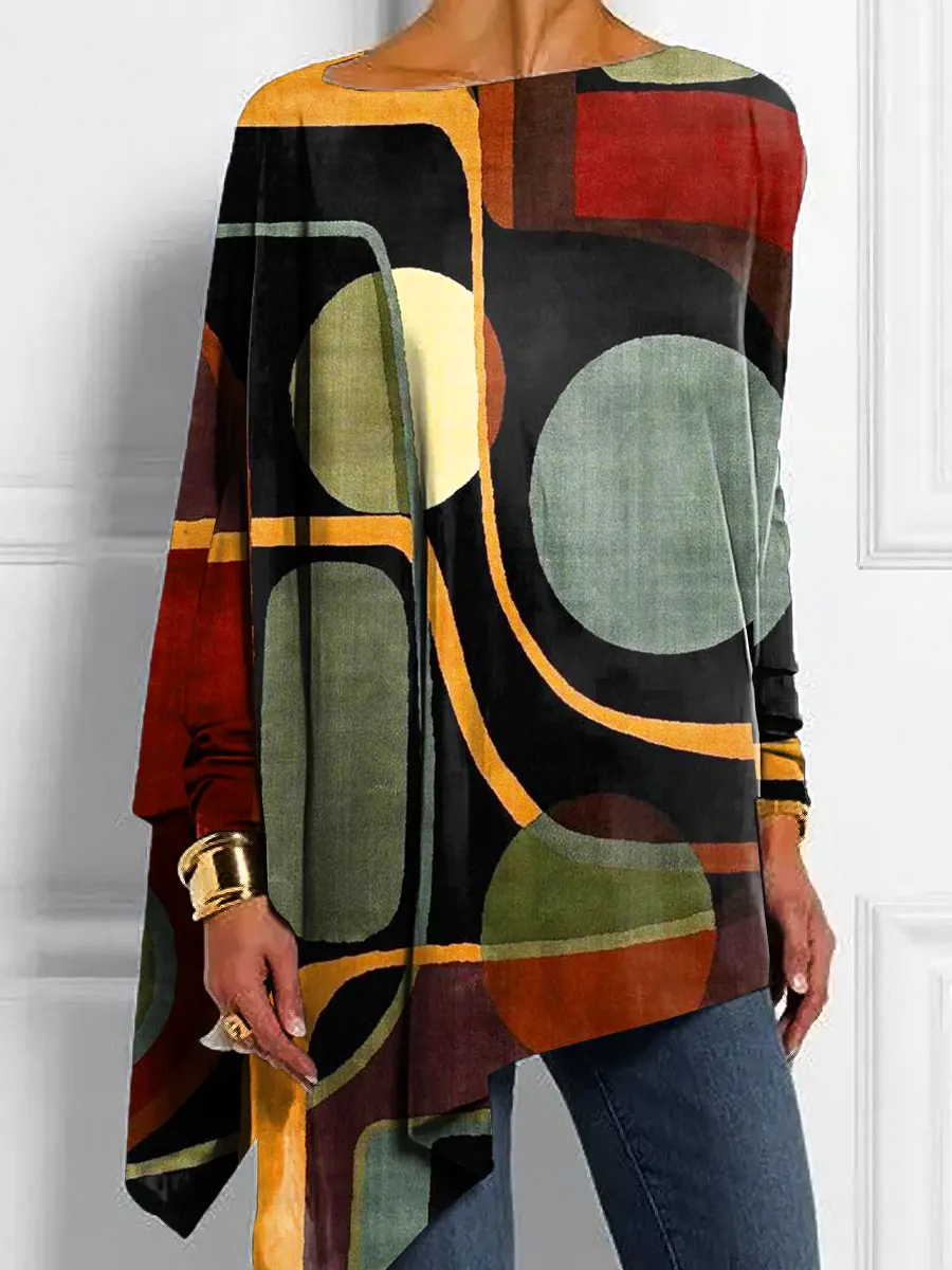 Women's Retro Abstract Geometric Art Print Button Back Casual Knitted Shirt