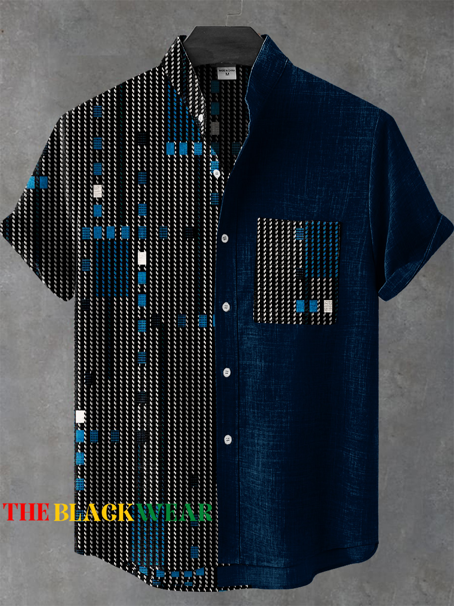 Retro Abstract Stripes Art Print Casual 100% Cotton Shirt