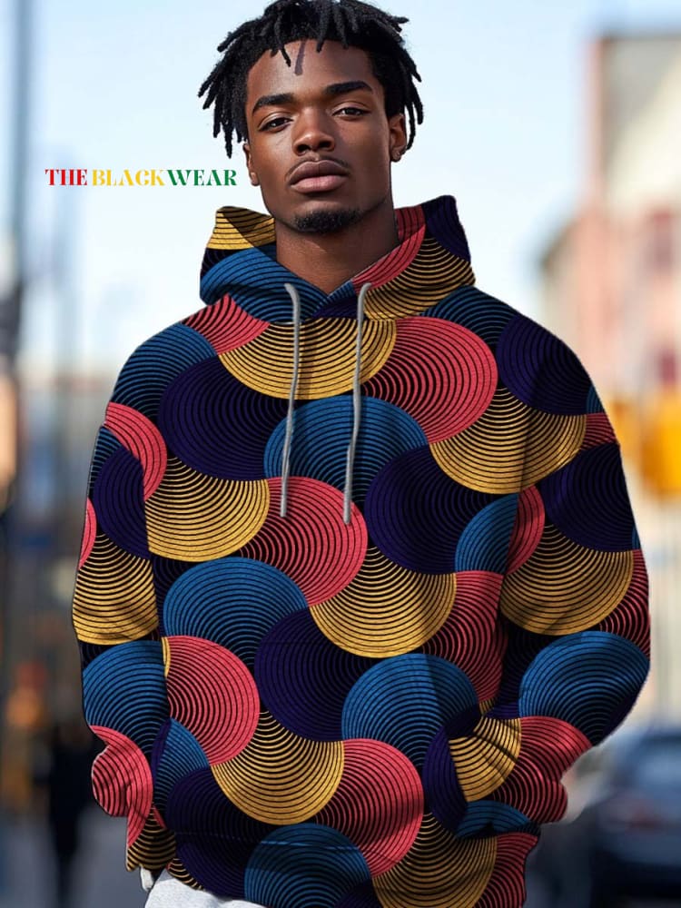 Line Combination Fan-shaped Decorative Pattern Casual Hoodie Sweatshirt