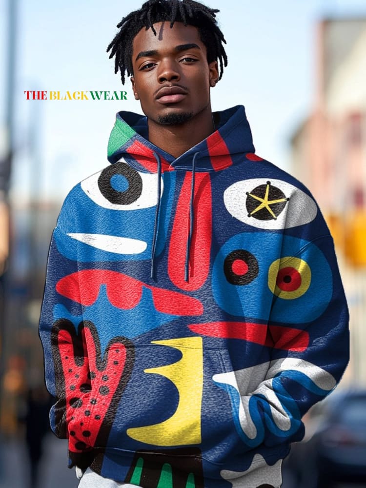 Men's Abstract Geometric Colorful Painting Print Casual Hoodie Sweatshirt