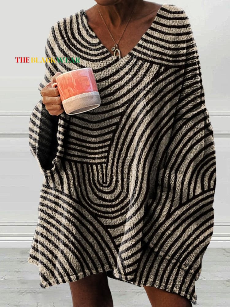 Women's Hand Drawn Line Pattern Print Casual Pullover Sweater