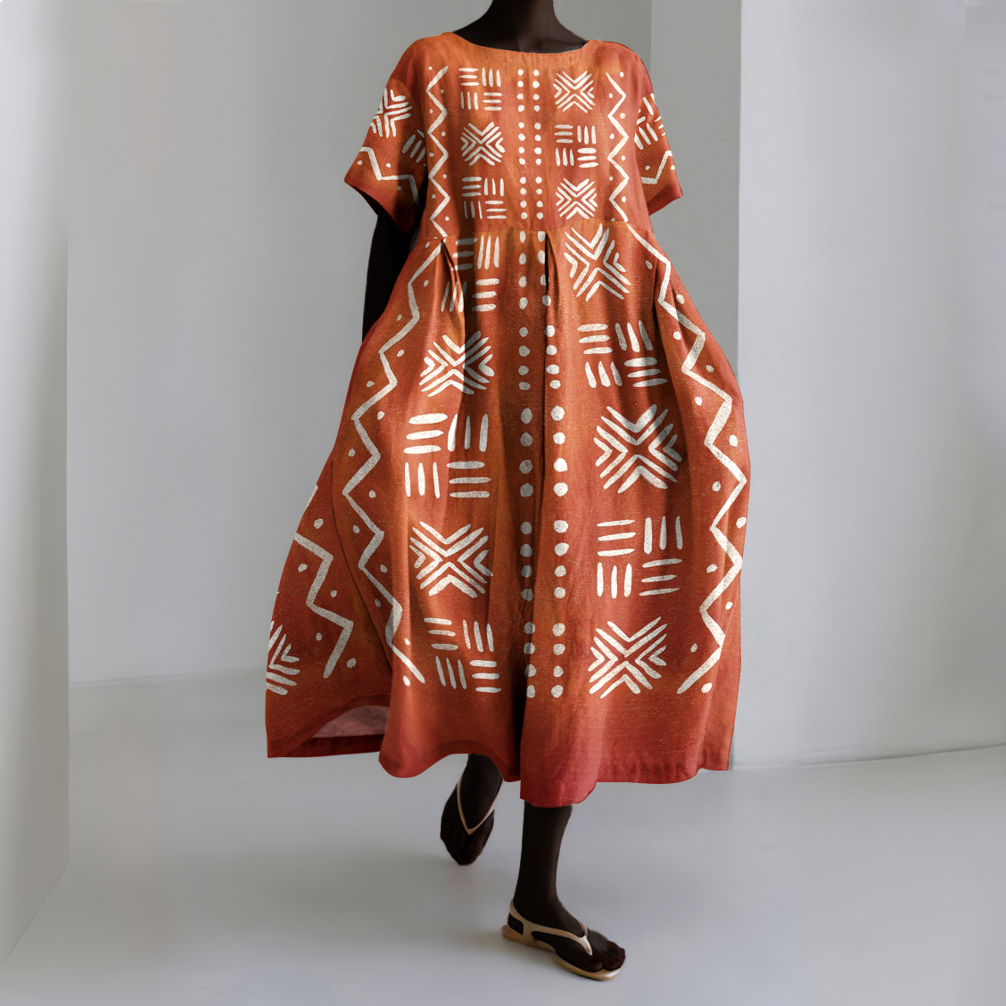 Vintage African Art Abstract Print Linen Dress