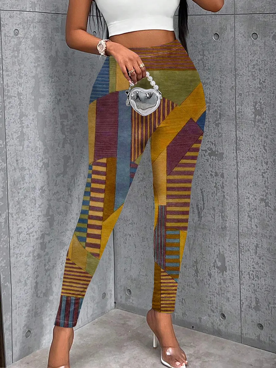 Retro Abstract Geometric Art Print Casual Stretch Pants