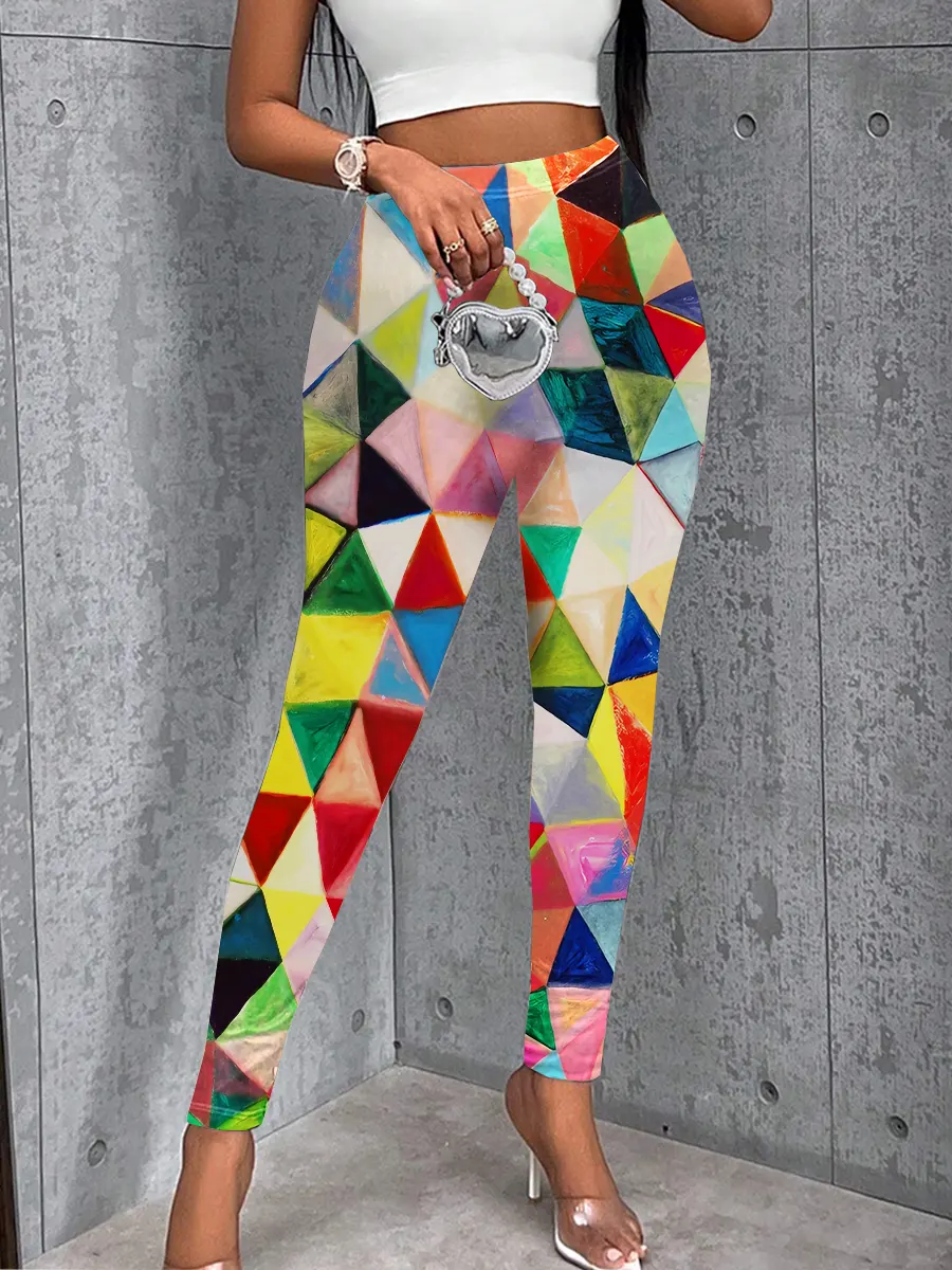Women's Colorful Abstract Geometric Art Print Casual Stretch Pants