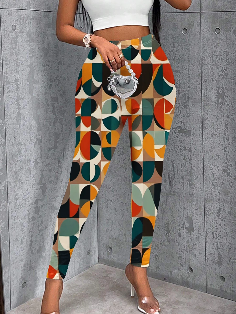 Women's Colorful Abstract Geometry Prints Casual Stretch Pants