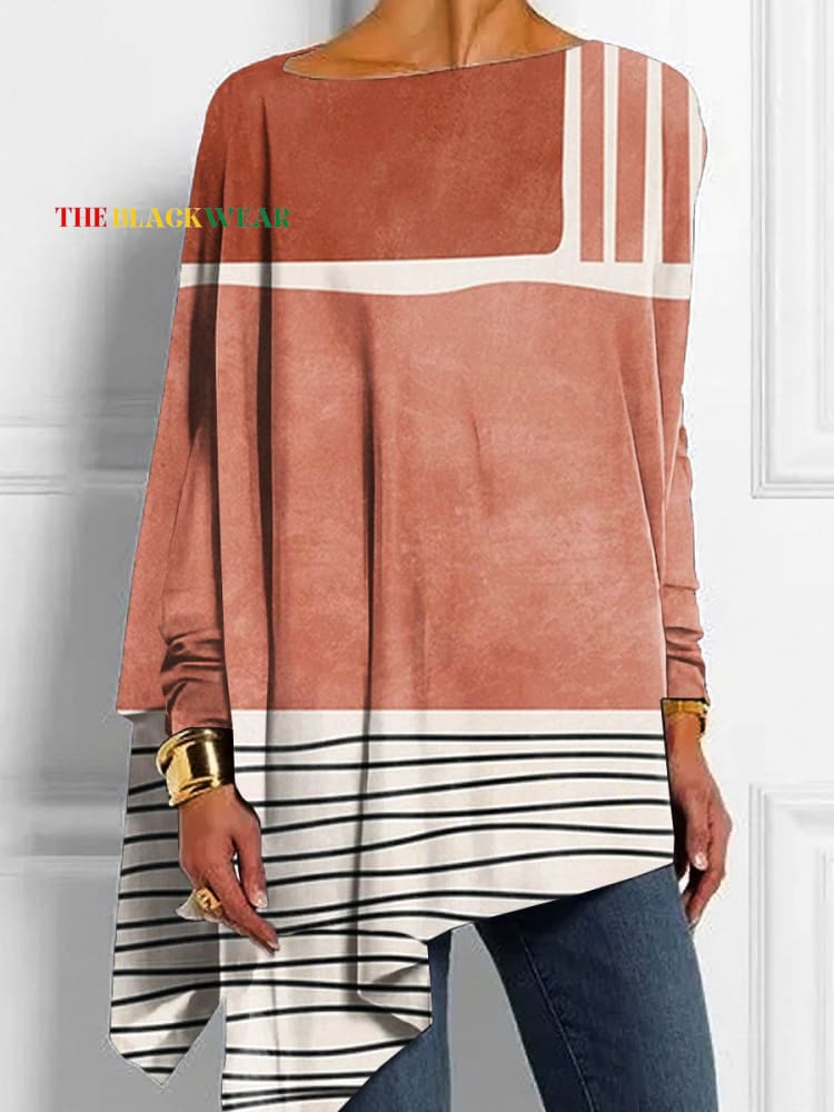 Retro Geometric Art Print Button Back Casual Knitted Shirt