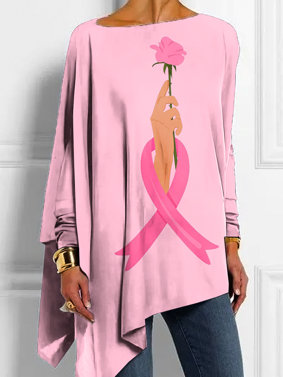 Women's Casual Breast Cancer Awareness Pink Ribbon Art Print Button Back Casual Knitted Shirt