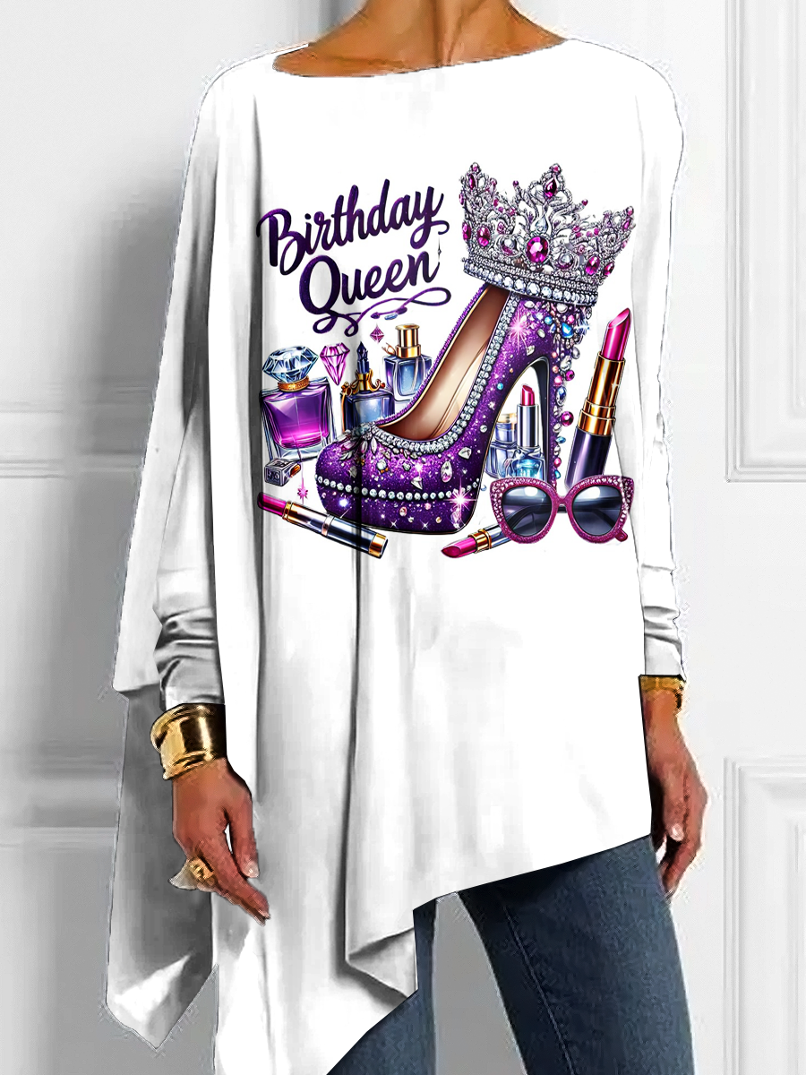 Women's Colorful Birthday Queen Art Prints Button Back Casual Knitted Shirt