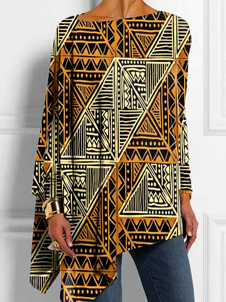 Women's Colorful Vintage Geometric Stripes Art Prints Button Back Casual Knitted Shirt