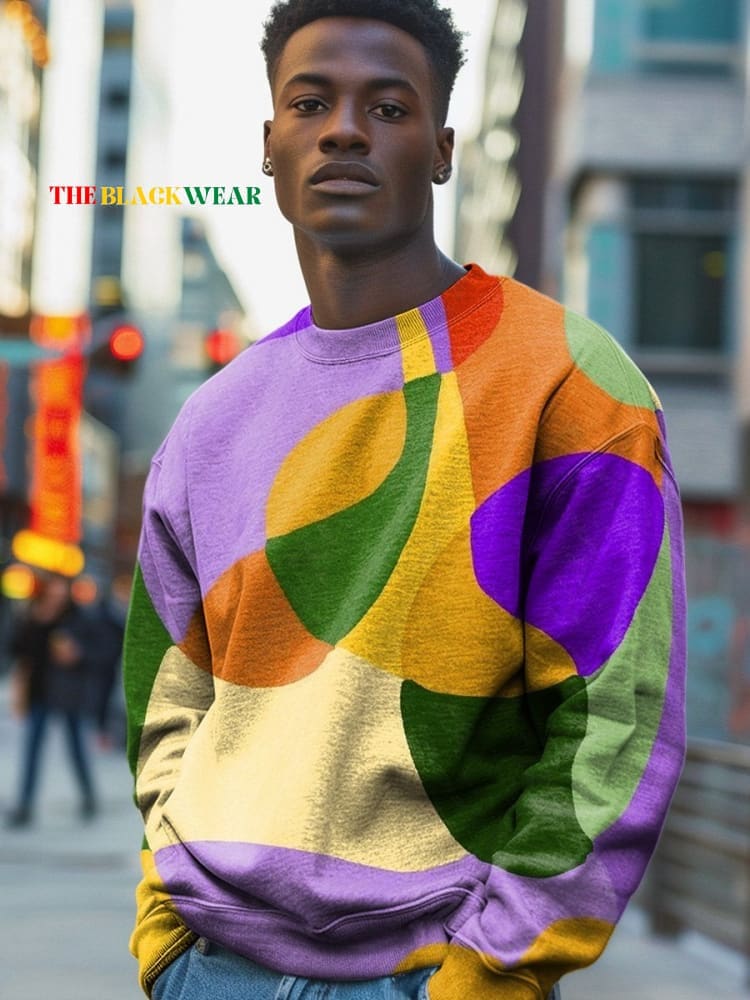 Abstract Colorful Geometric Art Print Knit Turtleneck Pullover Sweater