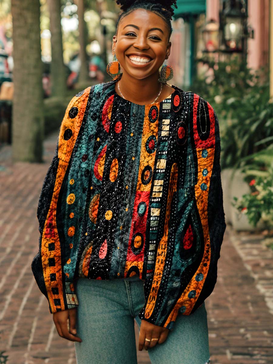Colorful African Stripes Geometric Art Print Knit Pullover Sweater