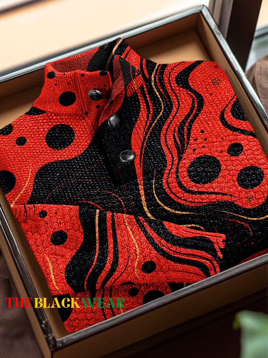 Men's Colorful Abstract Geometric Stripes Art Print Button Stand Collar Knit Pullover Sweater