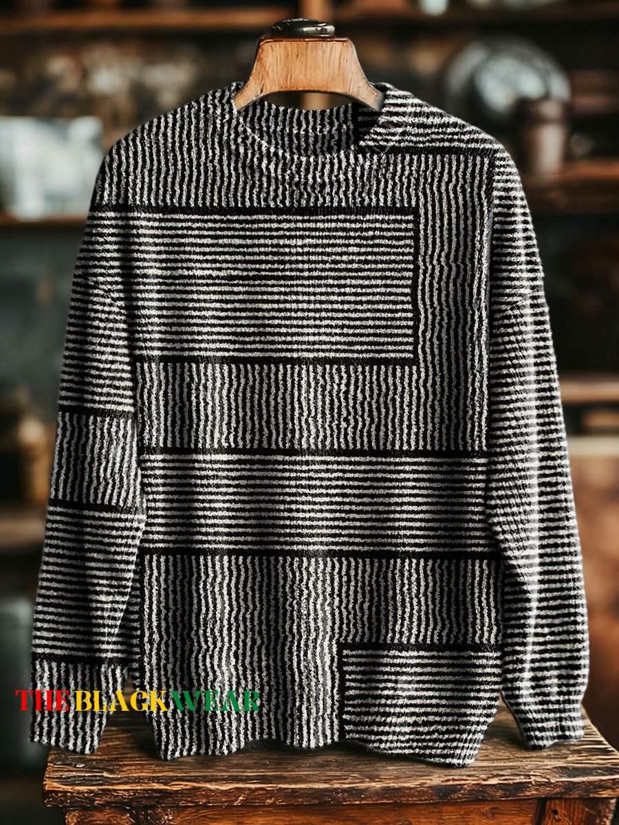 Retro Abstract Stripes Art Print Knit Pullover Sweater