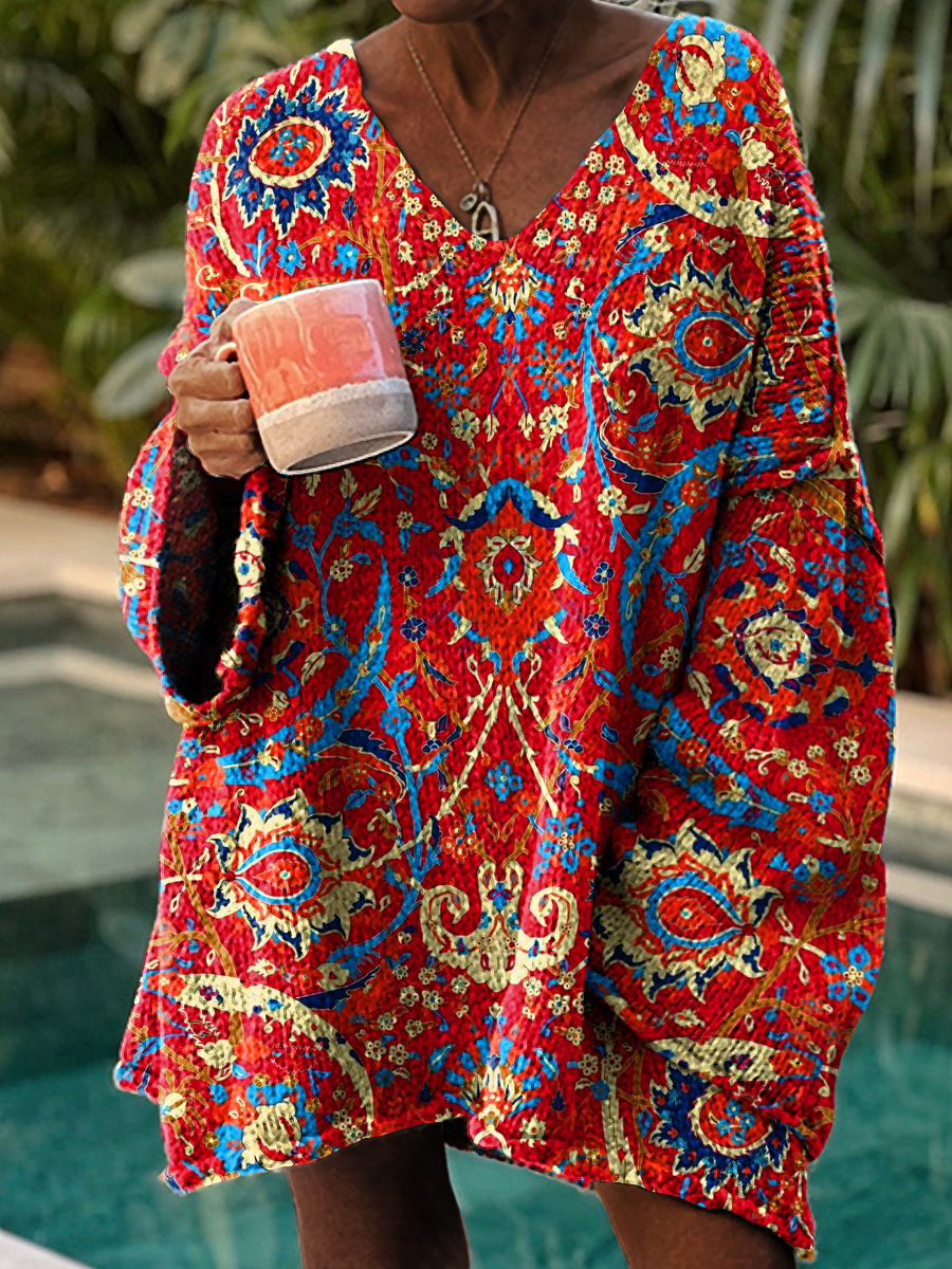 Women's Colorful Flowers Art Print Casual Pullover Sweater