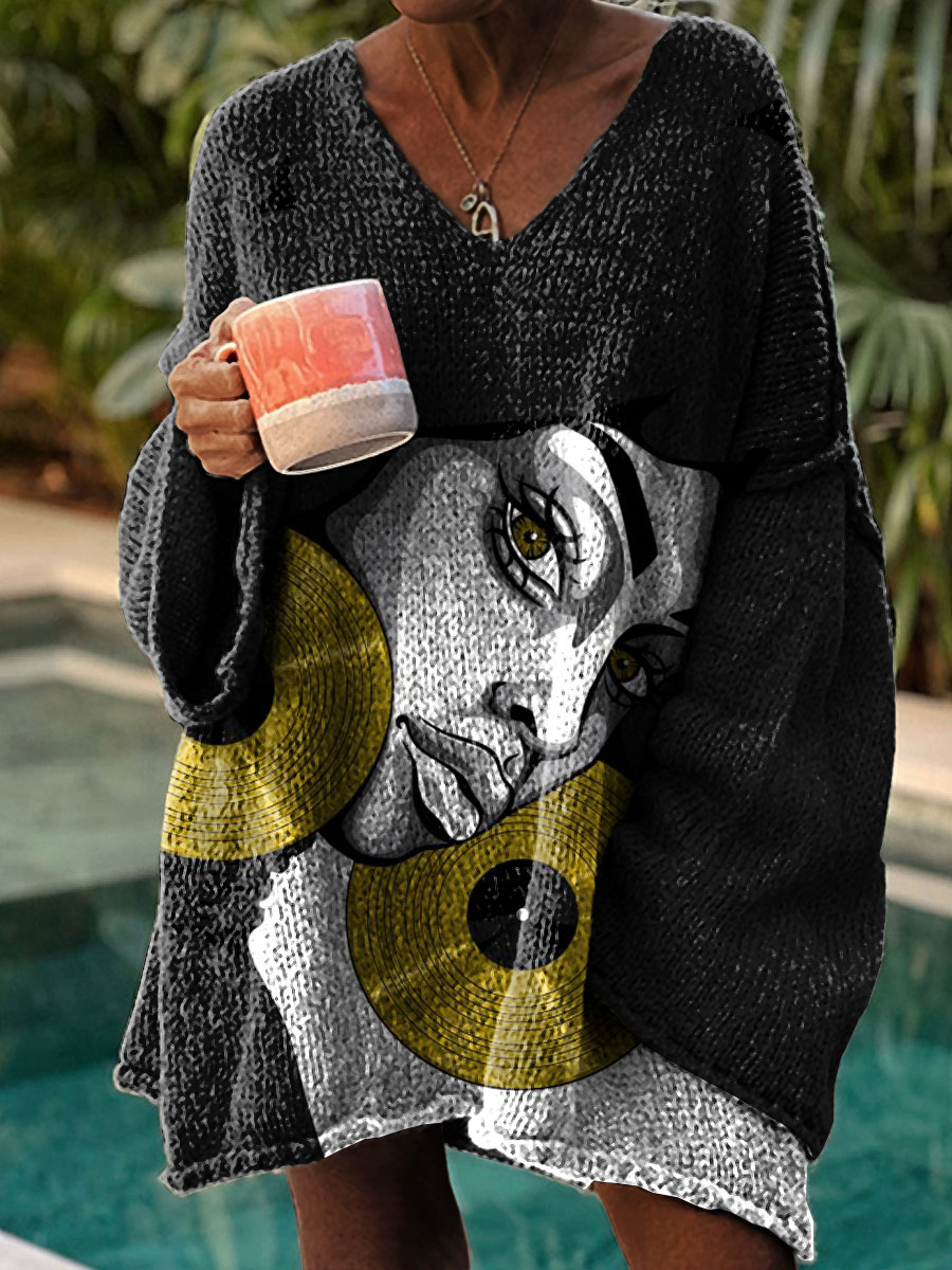 Women's Vintage Woman Art Print Casual Pullover Sweater