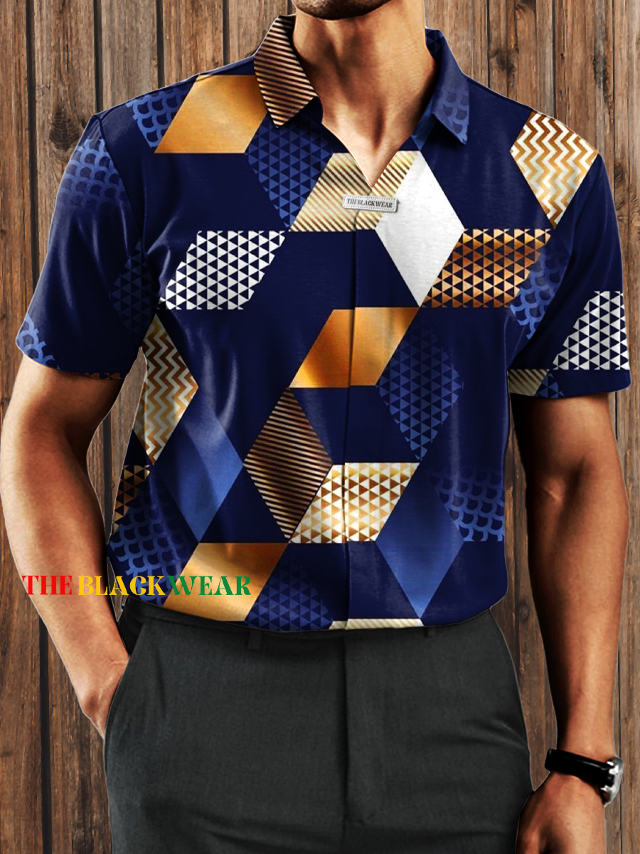 Colorful Abstract Geometric Art Print Casual Short Sleeve Lapel V-neck Polo Shirt