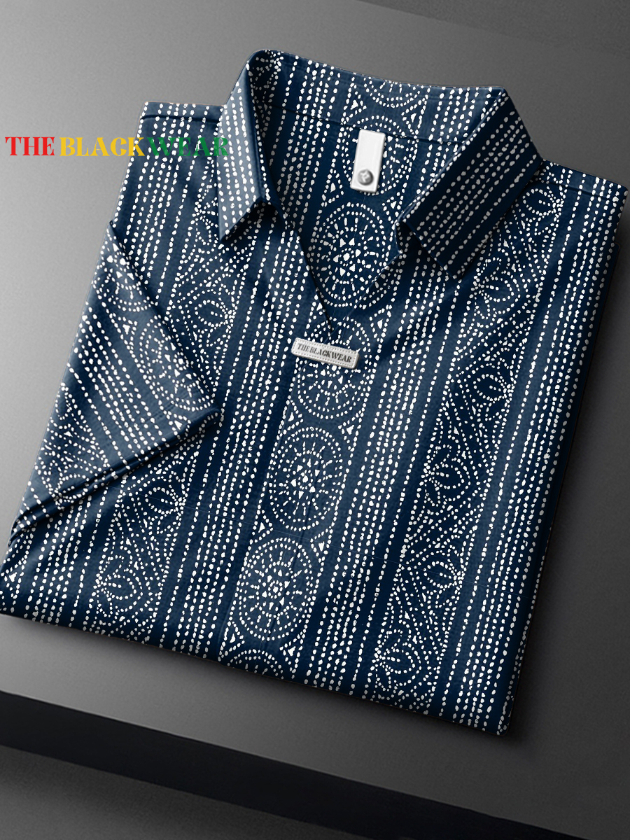 Retro Bohemian Art Print Casual Short Sleeve Lapel V-neck Polo Shirt