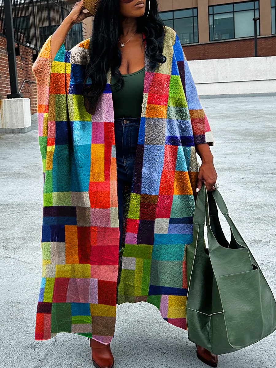 Women's Colorful Abstract Geometric Art Print Long Cardigan Sweater