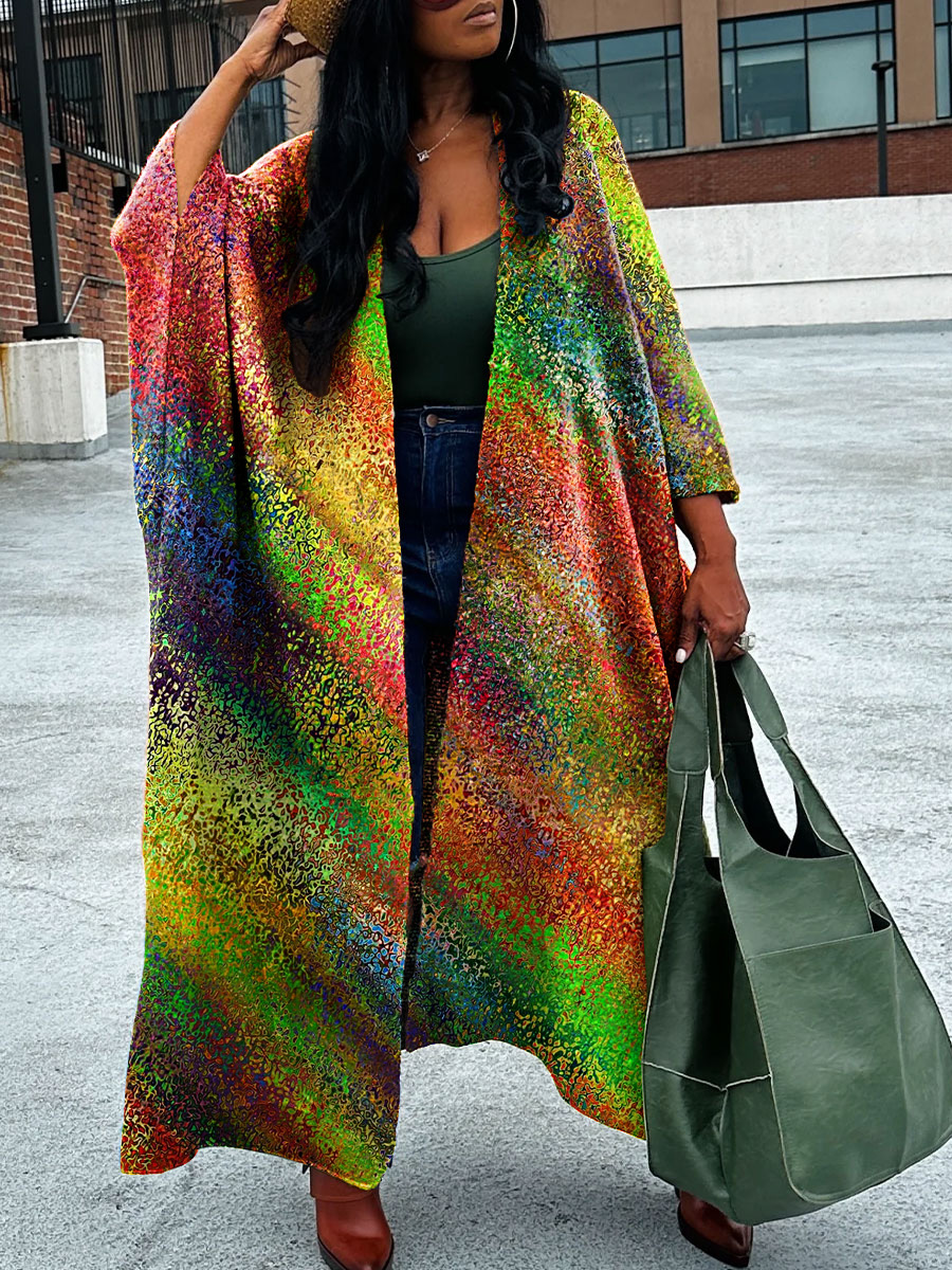 Women's Colorful Abstract Stripes Art Prints Long Cardigan Sweater