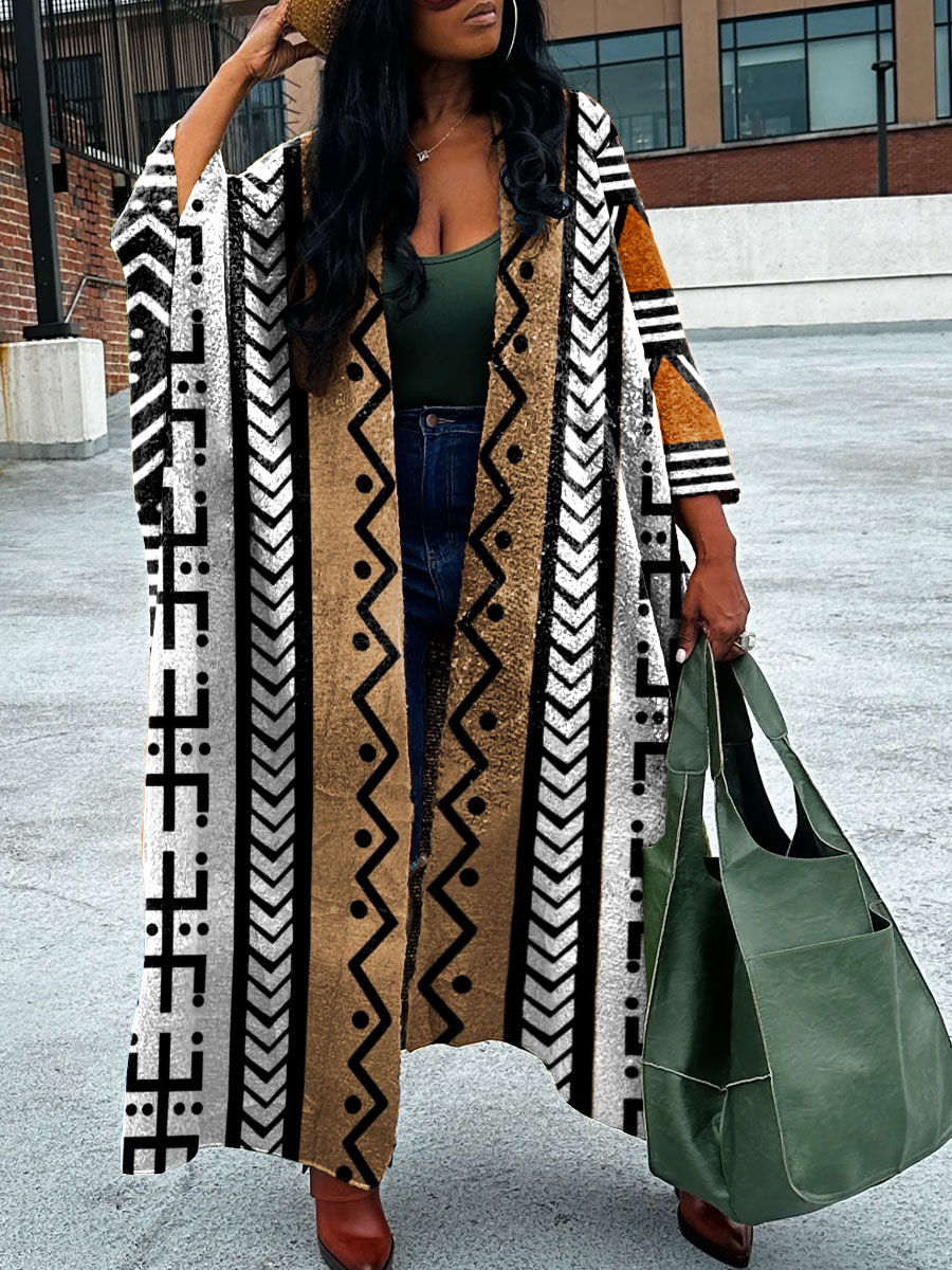 Women's Colorful African Stripes Geometric Art Print Long Cardigan Sweater