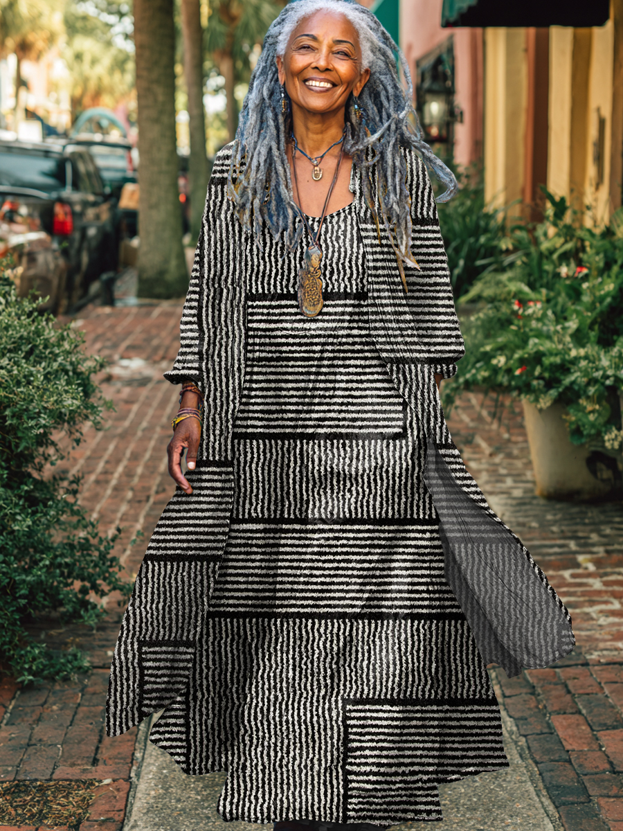 Women's Retro Abstract Stripes Art Print Casual Cotton Cardigan Cardigan Suspender Dress Two-Piece Set