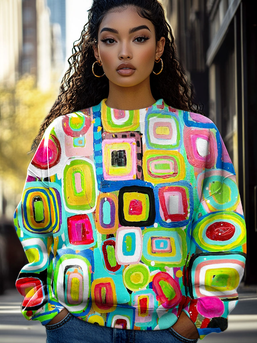 Vintage Abstract Geometric Color Block Art Print Sweashirt