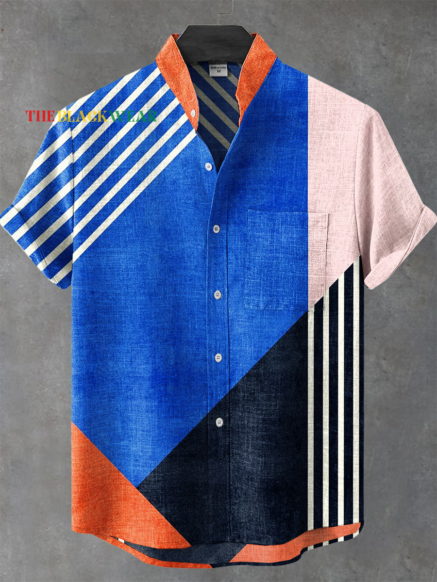 Fashion Colorful Geometric Stripes Art Prints Casual 100% Cotton Shirt