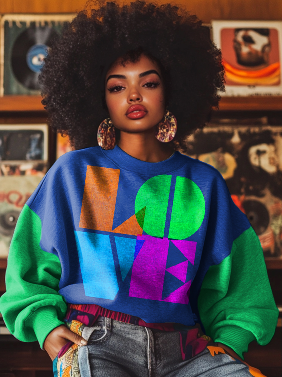 Fashion Colorful LOVE Geometric Art Print Casual Sweatshirt
