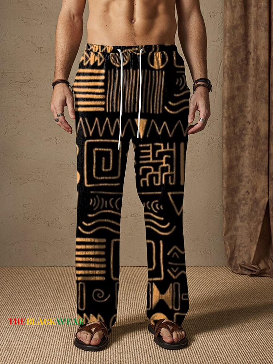 Men's Vintage African Art Tribal Comfy 100% Cotton Pants