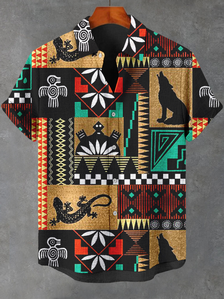 Men's Vintage Tribal Animals Patterns Geometric Print Casual Shirt