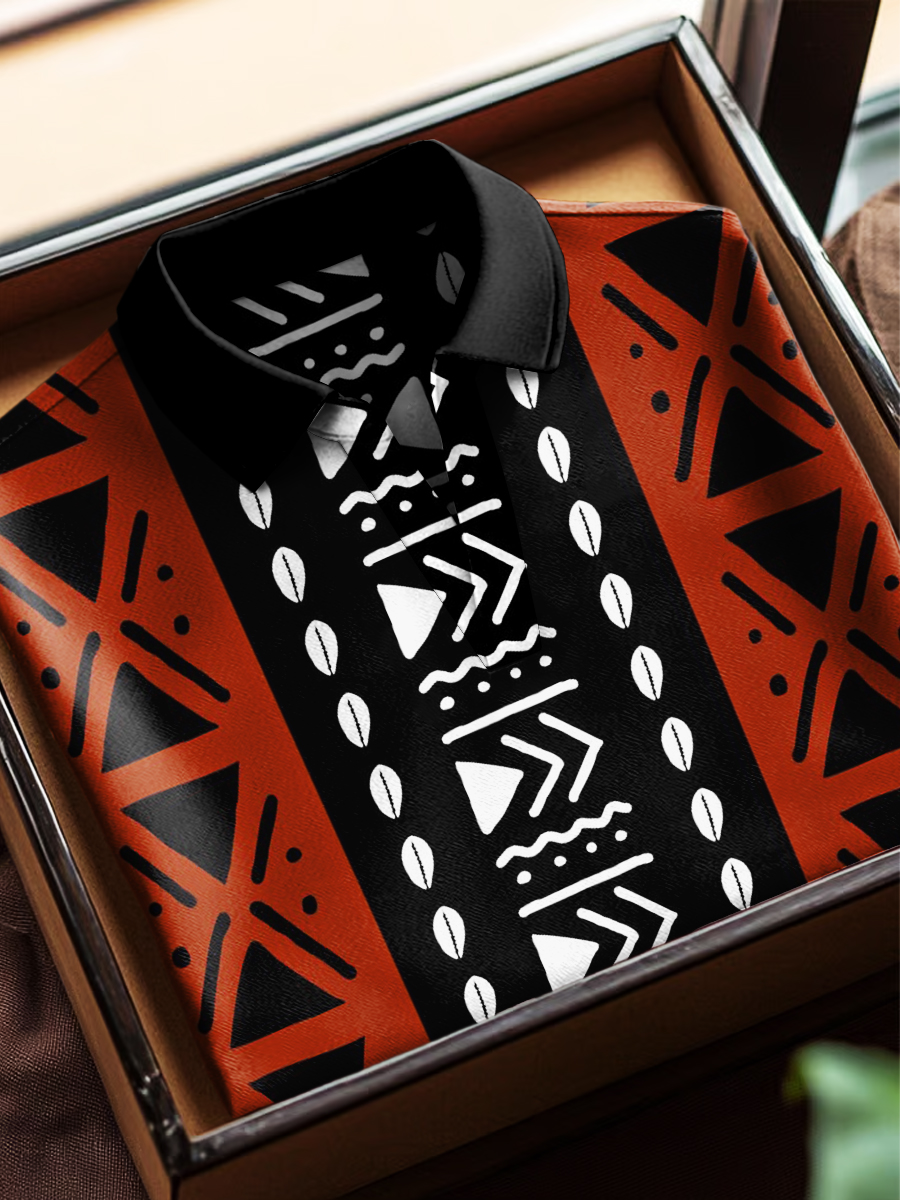 Retro Colorful African Totem Stripes Art Print Casual Cotton Lapel Short Sleeved Polo Shirt