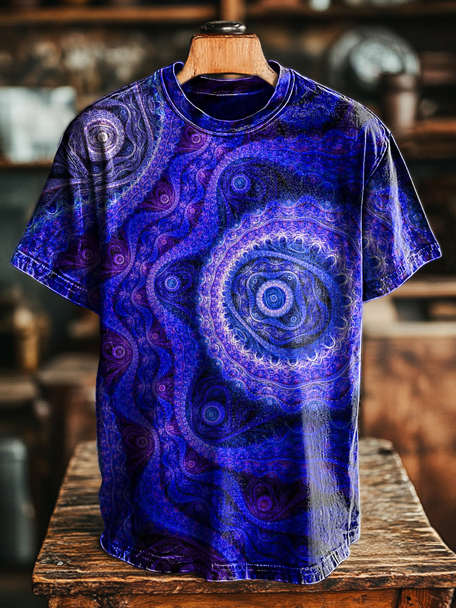 Unisex Vintage Abstract Mandala Print Casual Loose Short Sleeve T-Shirt