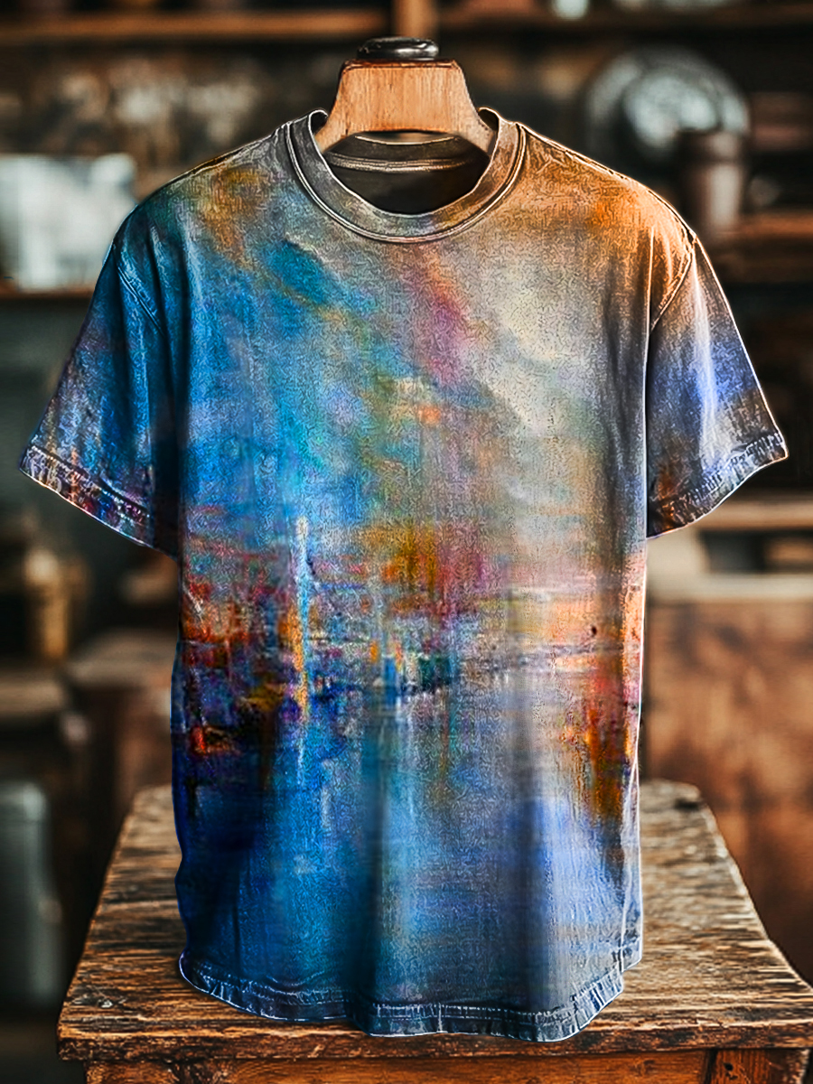 Unisex Vintage Colorful Abstract Painting Art Print Casual Loose T-Shirt