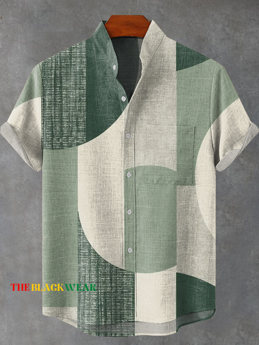 Vintage Abstract Oval Geometric Art Print Casual 100% Cotton Shirt