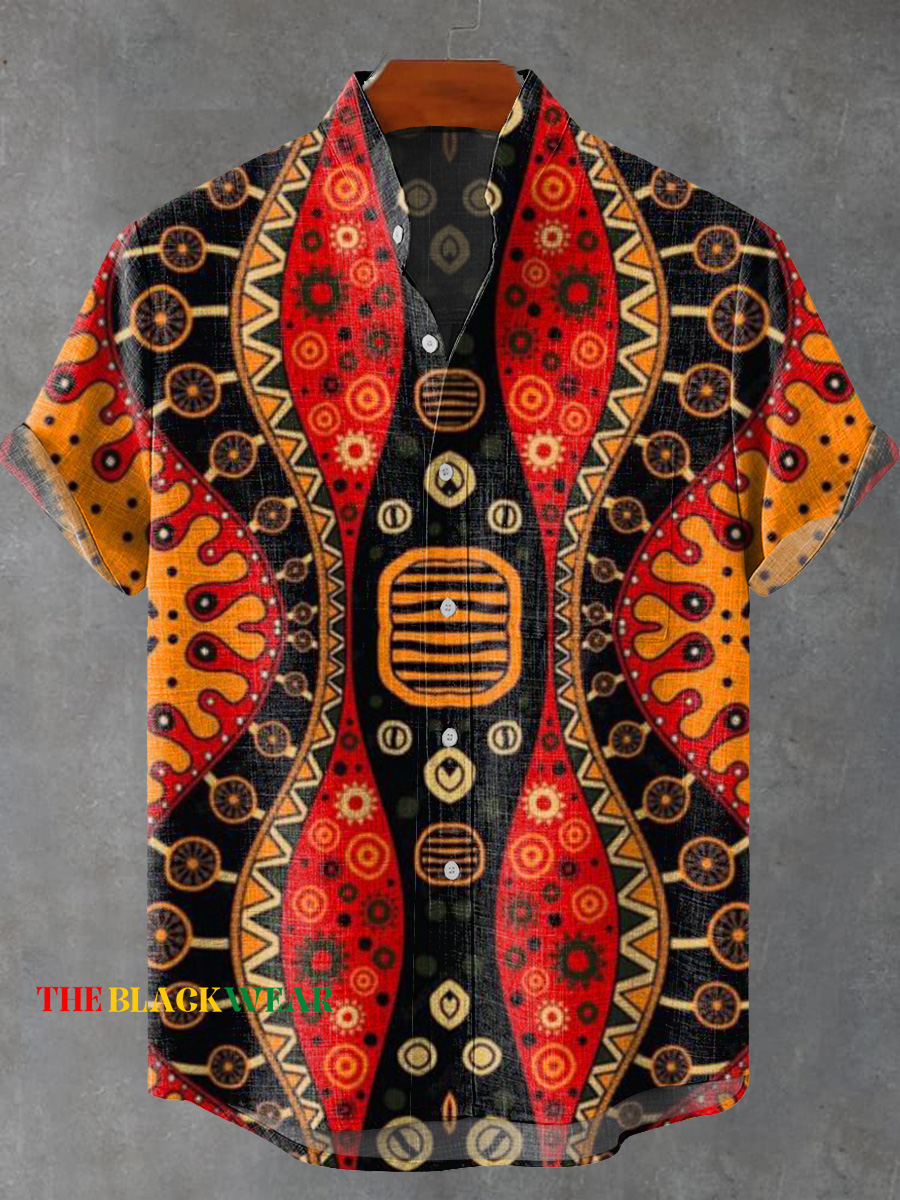 Vintage African Abstract Geometric Stripe Art Print Casual 100% Cotton Shirt
