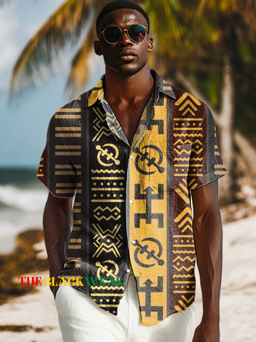 Vintage African Tribal Geometric Stripes Art Print Casual 100% Cotton Shirt