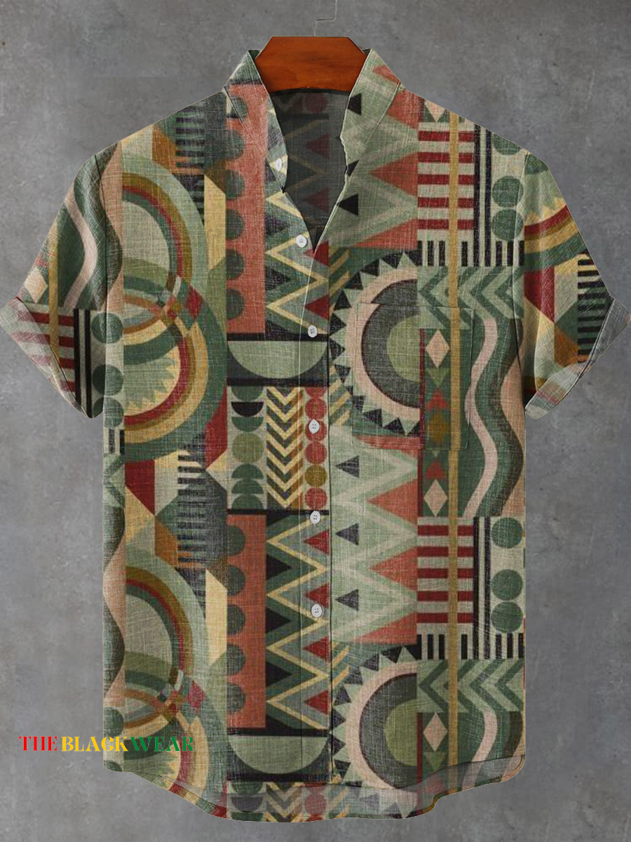 Vintage Art Geometric Patterns Vintage Print Casual 100% Cotton Shirt