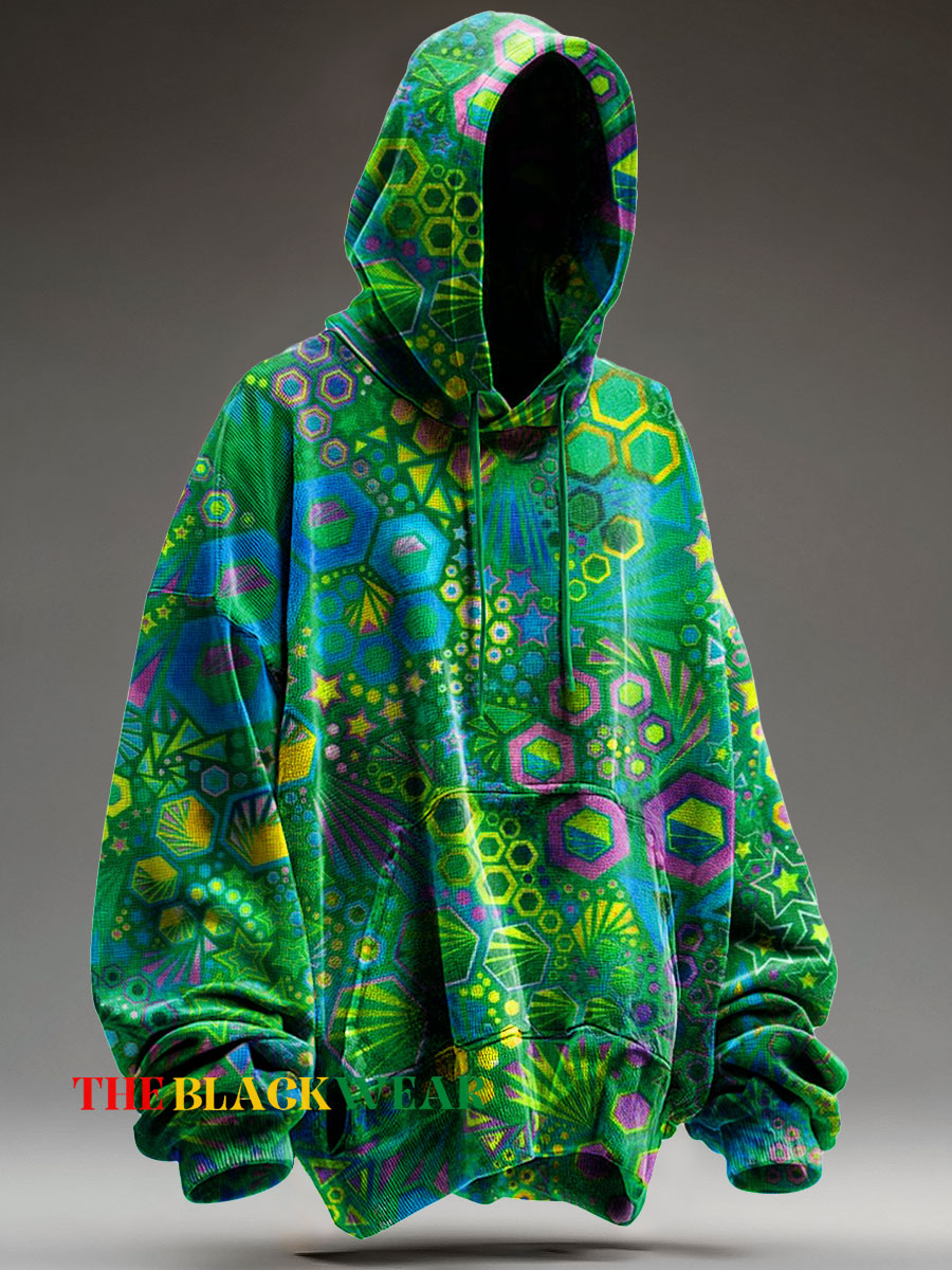 Vintage Colorblock Geometric Art Print Casual Hoodie Sweatshirt
