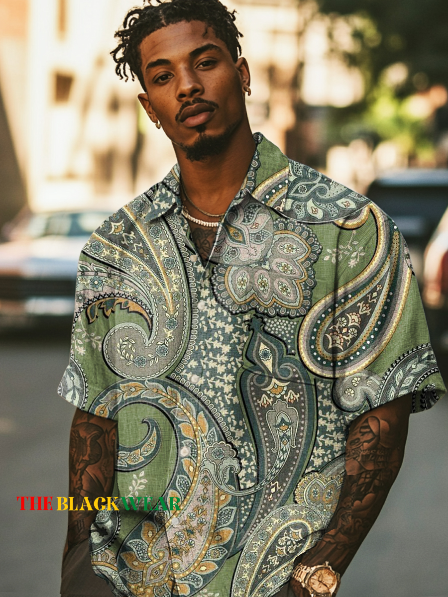 Vintage Ethnic Paisley Floral Painting Art Print Casual 100% Cotton Shirt