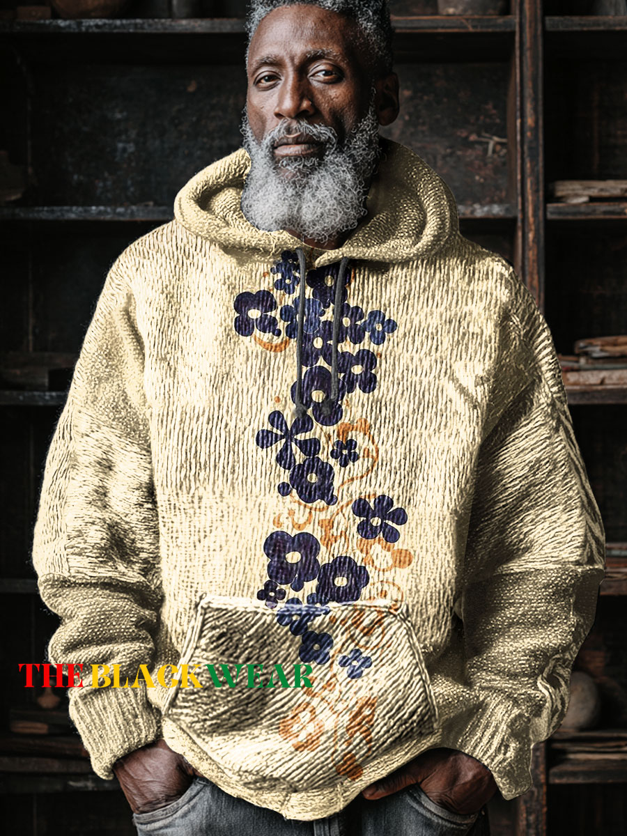 Vintage Flower Art Print Knit Pullover Hooded Sweater