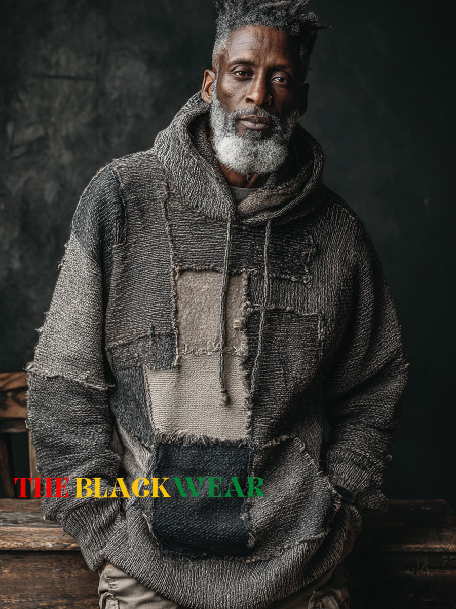 Vintage Patchwork Print Knit Pullover Hooded Sweater