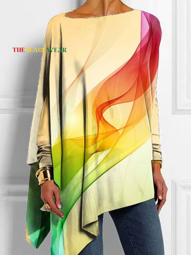 Women's Colorblock Line Art Print Button Back Casual Knitted Shirt