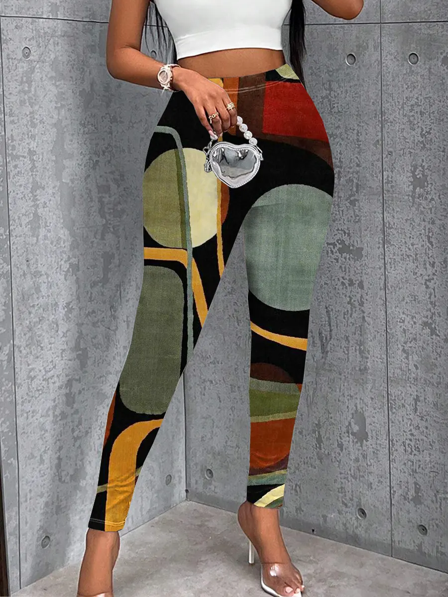 Women's Retro Abstract Geometric Art Print Casual Stretch Pants