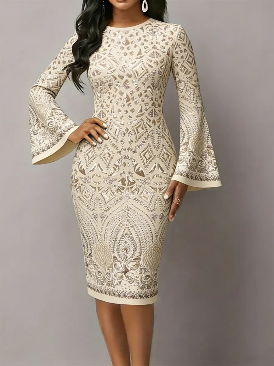 Women's Retro Floral Art Prints Flared Sleeves Midi Bodycon Dresses
