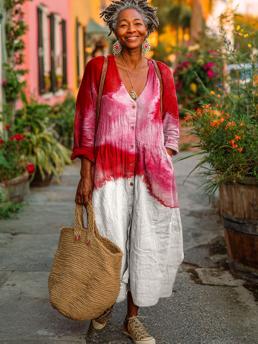 Women's Vintage Abstract Art Print Long Sleeves V-neck Dress