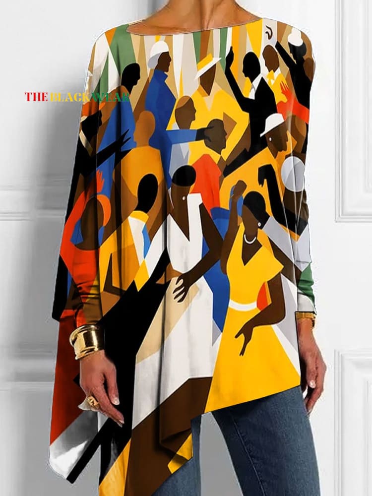 Women's Vintage African Afro Pattern Art Print Button Back Casual Knitted Shirt