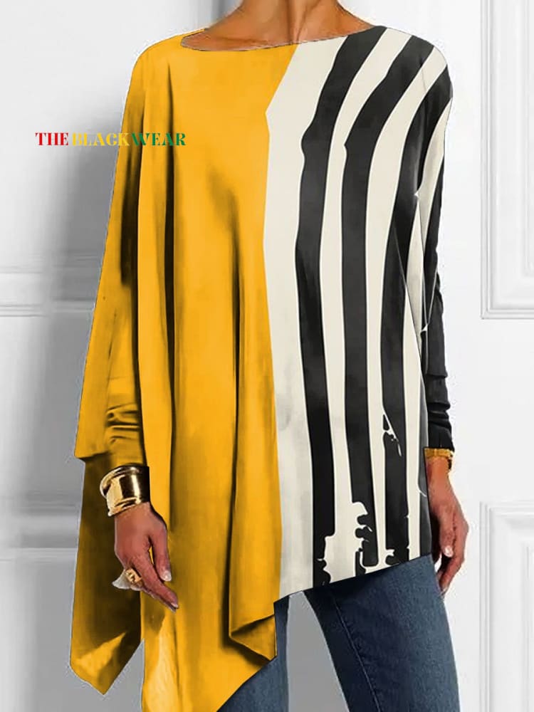 Women's Vintage Colorblock Striped Art Print Button Back Casual Knitted Shirt